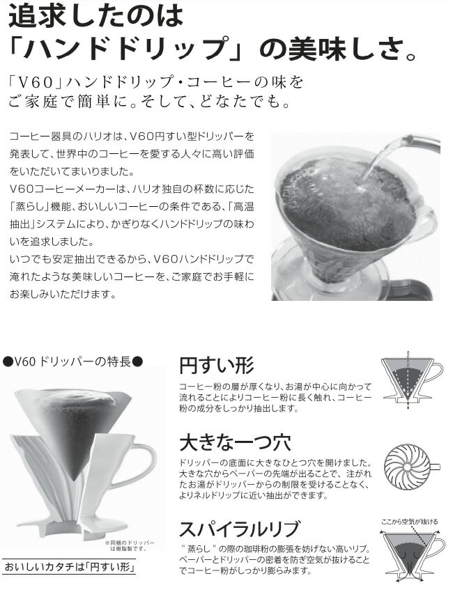 ■高温抽出93℃ ■V60円すい形ドリッパー